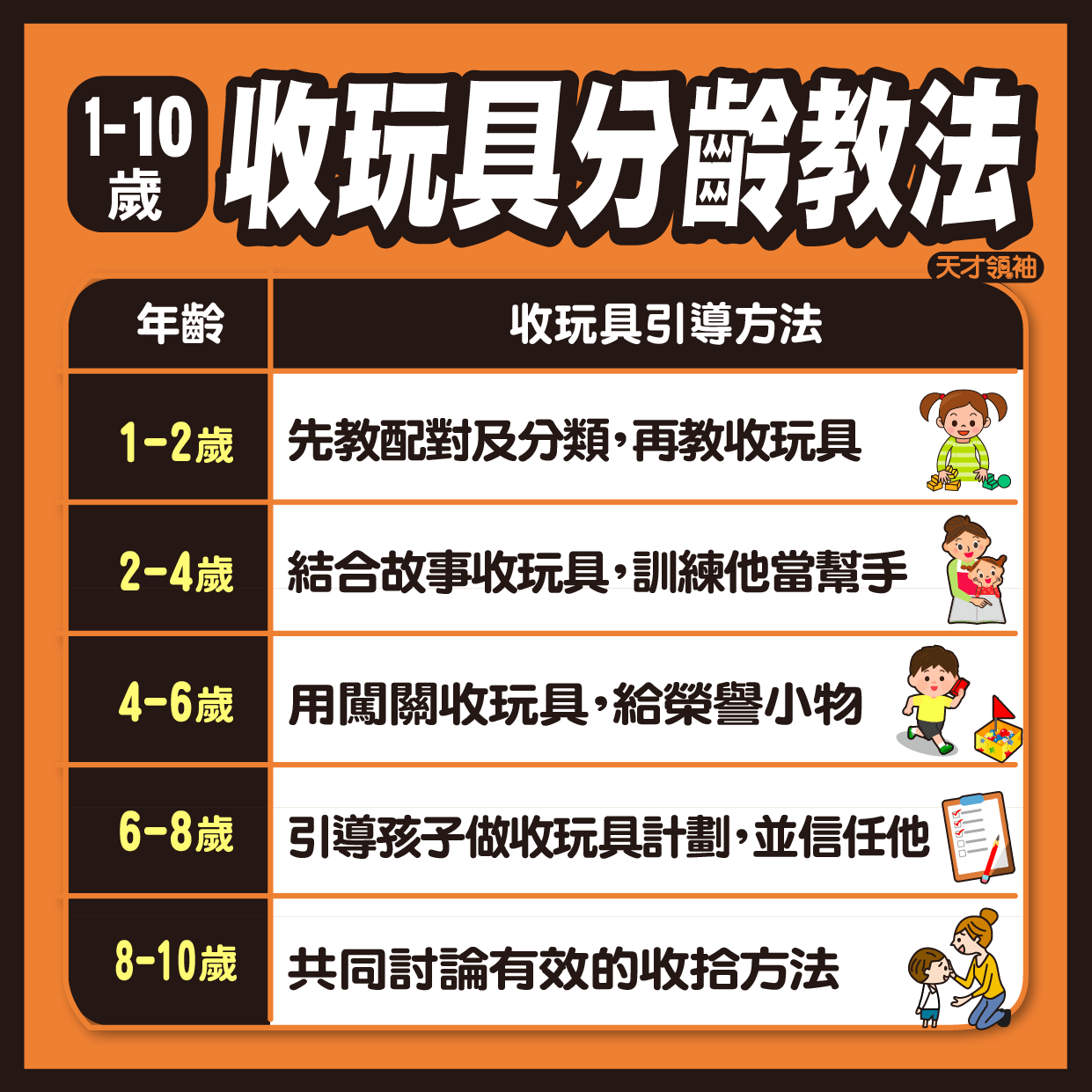 這個年紀不應急著要求寶寶收玩具。父母應採取「提醒與示範」,並帶著孩子一起收,而非強制要求。