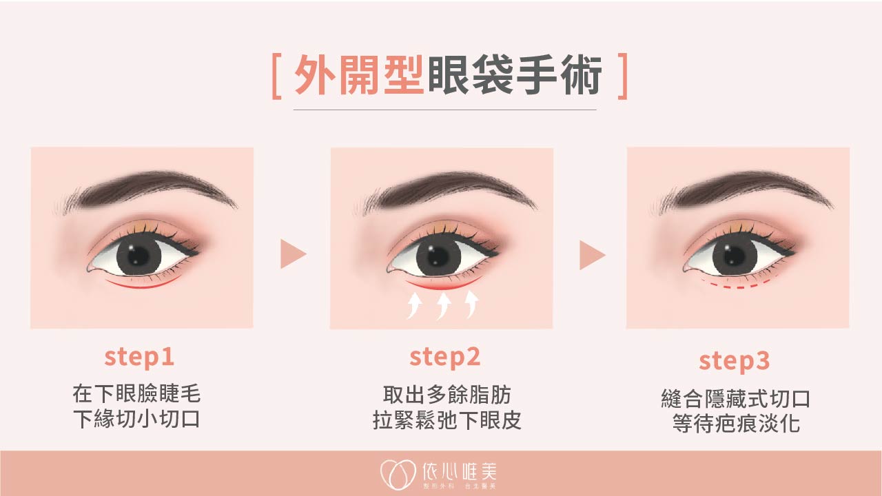 眼袋類型 視覺特色 水腫型 眼周浮腫 脂肪型 眼下半月凸起 淚溝型 眼袋下凹陷陰影 鬆弛型 眼下袋狀贅皮