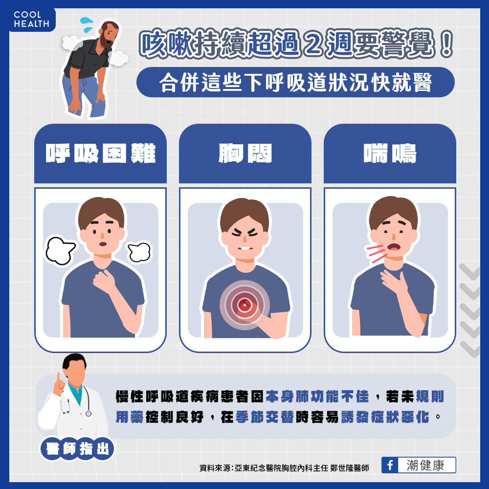 出現呼吸道症狀(如發燒、咳嗽、流鼻水、打噴嚏)時,應在家休息、避免外出或搭乘大眾運輸,並全程佩戴口罩就醫,同時與他人保持至少1公尺距離。