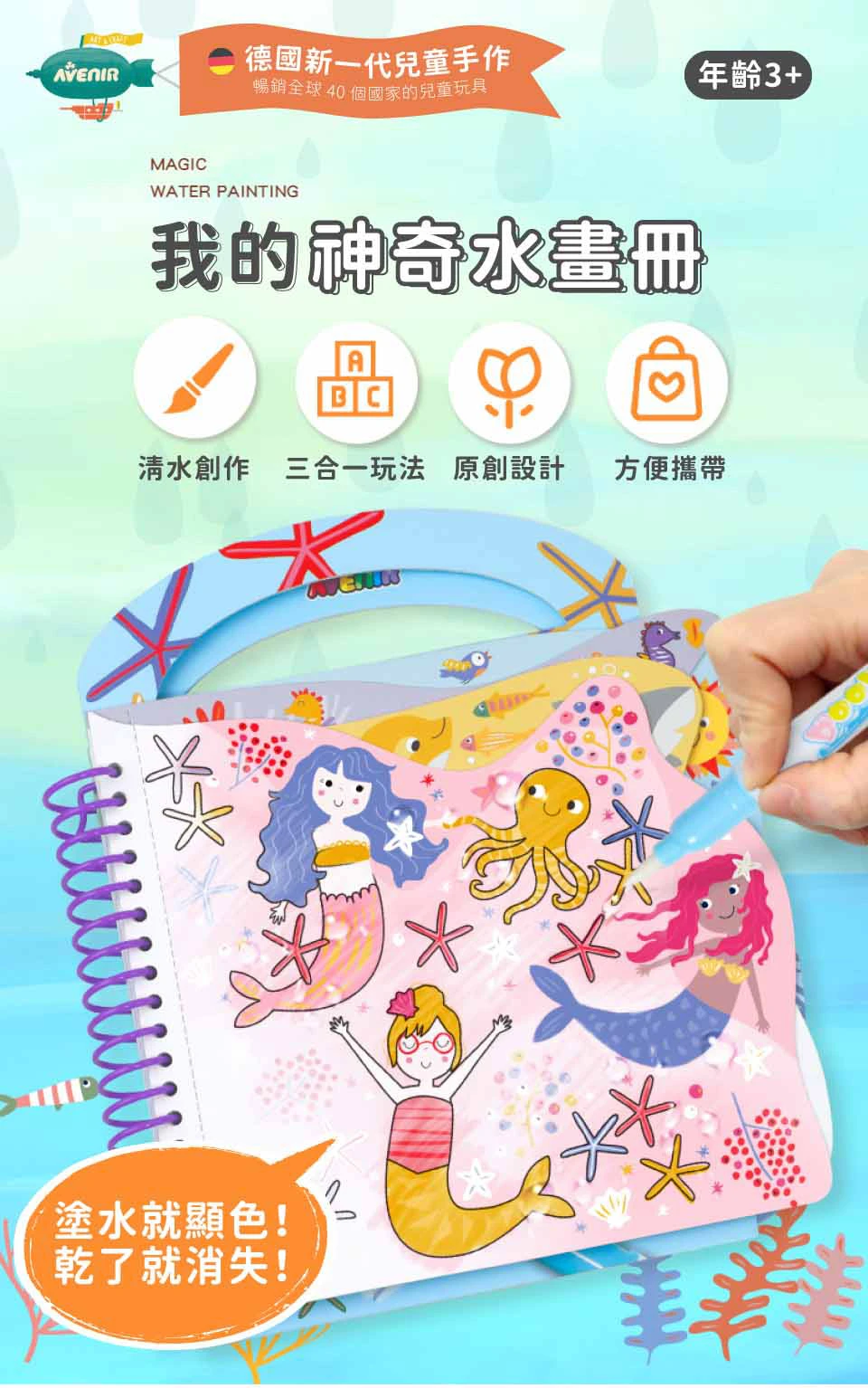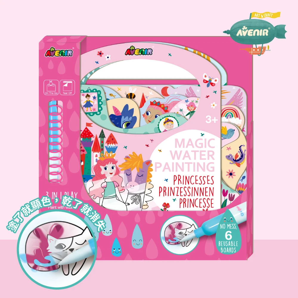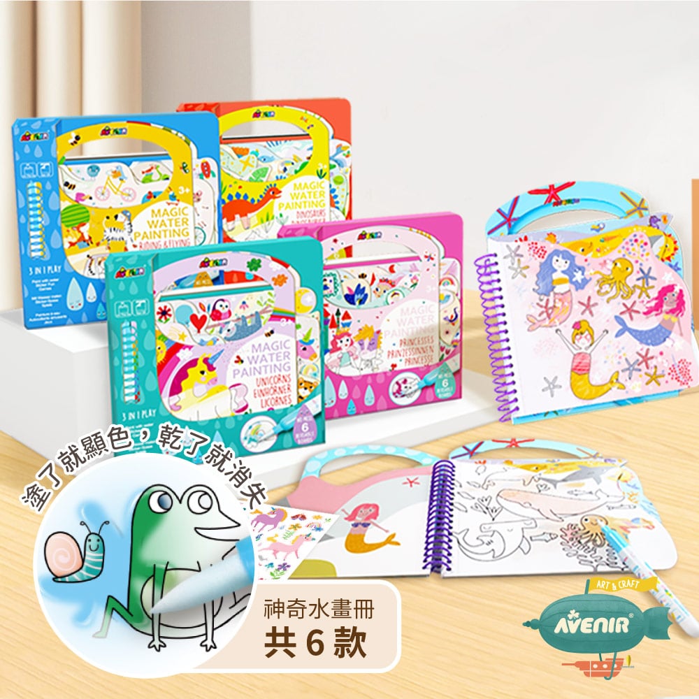 - 適合親子外出攜帶,水筆可收納於畫冊內。