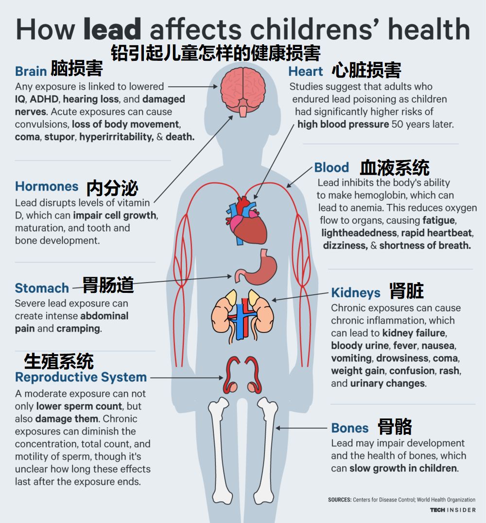 - 長期後果:鉛囤積骨骼,影響兒童未來發展。