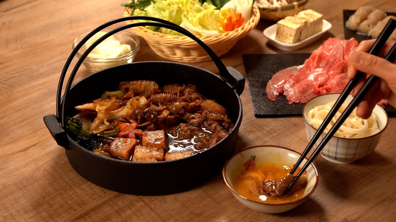 | 烹調順序 | 所有食材(牛肉、蔬菜、豆腐、長蔥等)一起放入醬汁中燉煮 | 先抹牛油乾煎牛肉至微焦、撒糖淋醬,再加蔬菜等 |