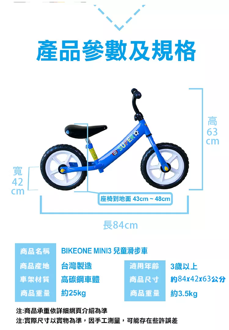 - 身高約85至110公分的孩子適合騎乘滑步車。