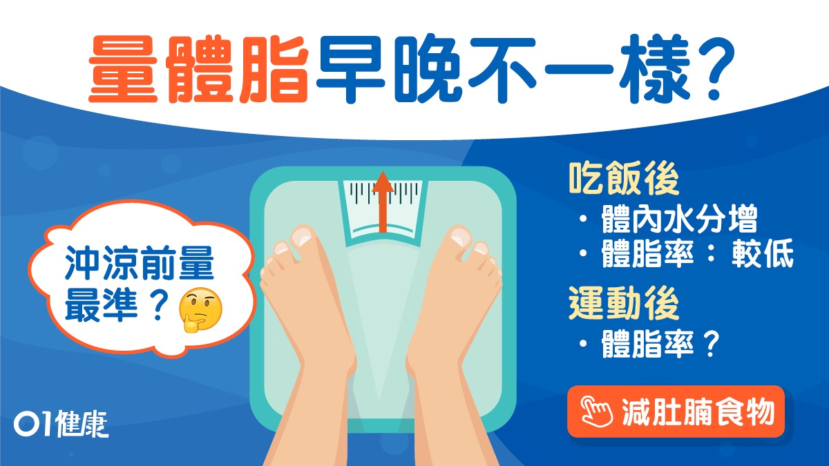 運動後測量會低估體脂肪,應等待身體恢復正常狀態再測量。 -