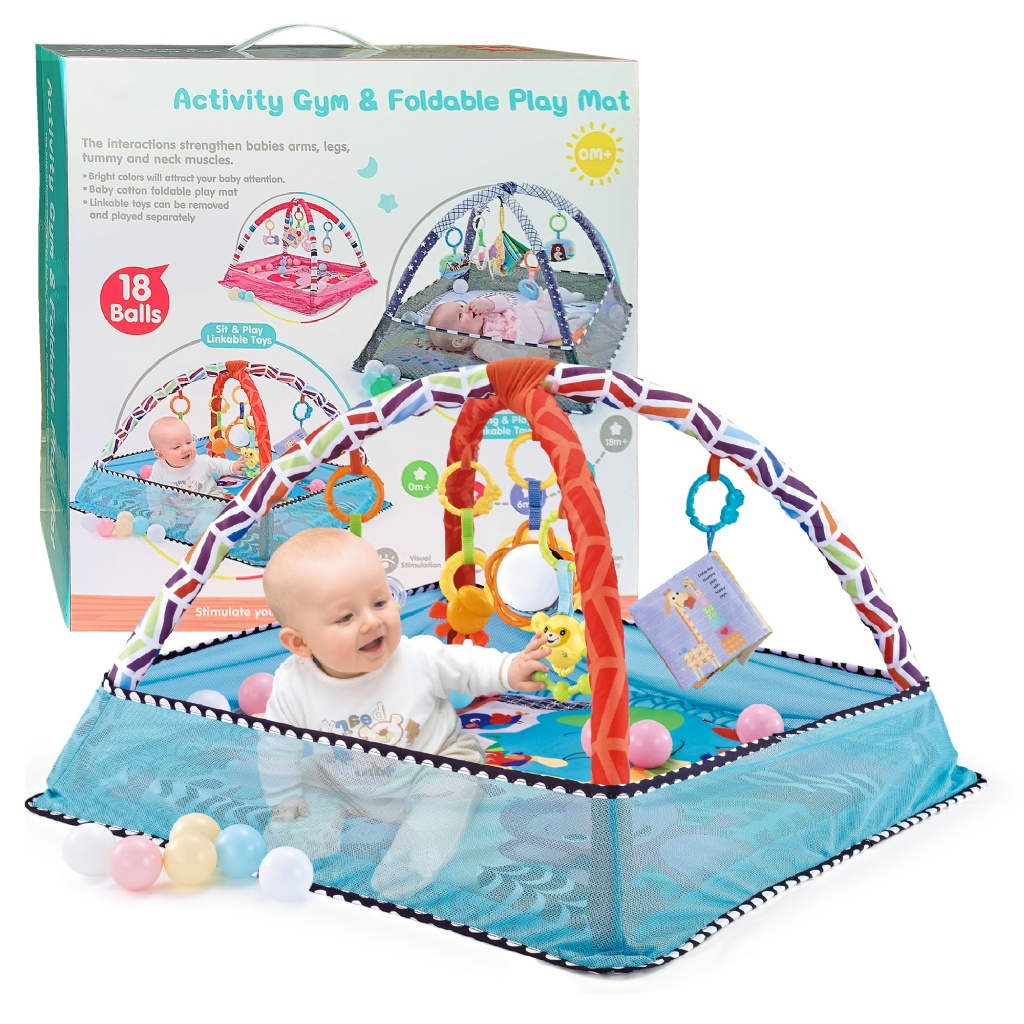 這類遊戲墊設計有多種玩具配件,色彩繽紛且易於抓握,能促進多重感官發展與精細動作,並且有助於寶寶從躺臥、趴著到坐著的不同成長階段,訓練手眼協調與感覺統合。