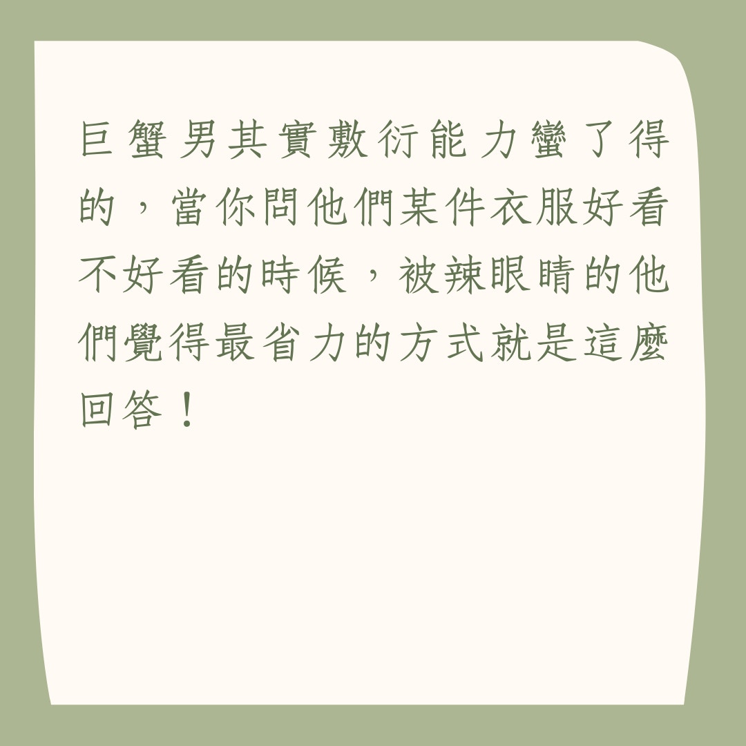 - 巨蟹男喜歡你時,會在小細節上照顧你,甚至會有些嘮叨,這種關心也會透過肢體語言表現出來。