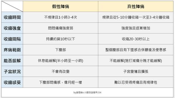 真假宮縮的判斷方法主要可從以下幾個面向來區分: