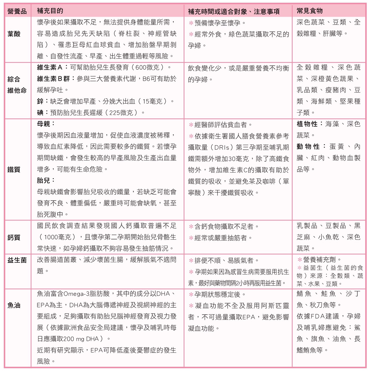 均衡飲食與適當運動:均衡攝取六大類食物(全穀、豆魚蛋肉、乳品、蔬菜、水果、油脂堅果),避免過度加工及刺激性食物,有助維持孕婦及胎兒健康。適當運動則可增加產道肌肉強韌性,減輕陣痛疼痛,促進產程順利。