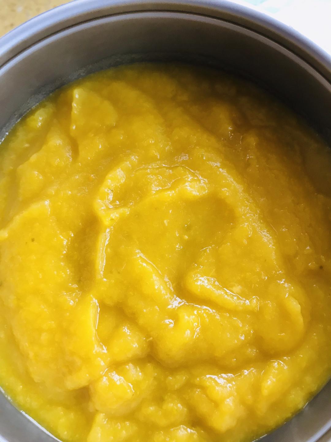 - 打好的蘋果南瓜泥放涼後即可餵食寶寶。