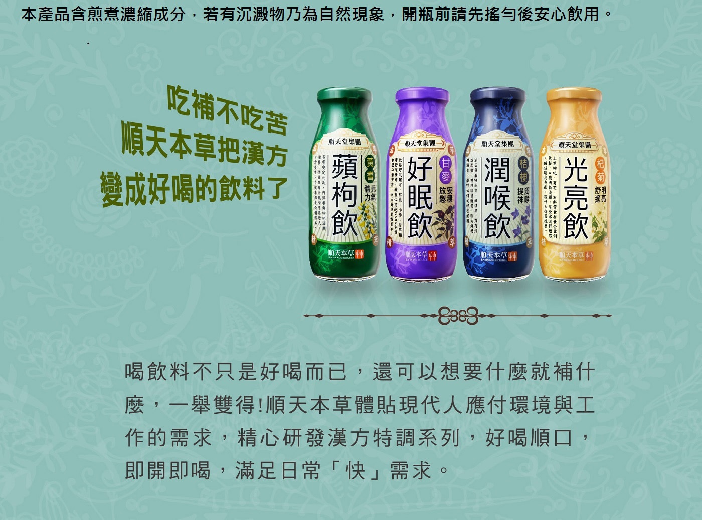 所以,順天光亮飲以其獨特的果蔬與漢方結合配方,強調抗氧化與養顏功效,是順天本草漢方特調系列中較為清新且適合日常飲用的產品,與其他漢方飲品在成分組合與功效定位上有明顯差異。