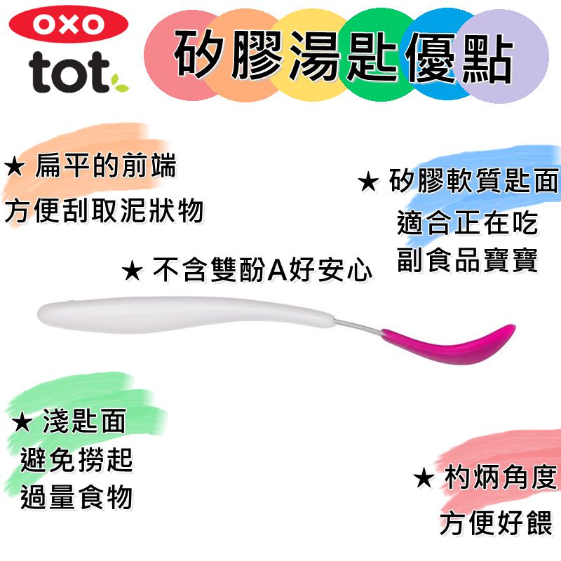 - 幼兒自主學習用餐階段:耐用且易清潔的矽膠湯匙適合寶寶練習自己吃飯,方便攜帶外出。