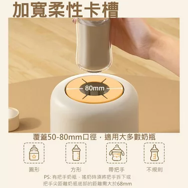 | 操作方式 | 電動智能三檔、一鍵操作,360度雙向柔速運轉,減少泡奶氣泡產生 | 需手動搖晃奶瓶,操作較費力且容易搖出過多氣泡 |