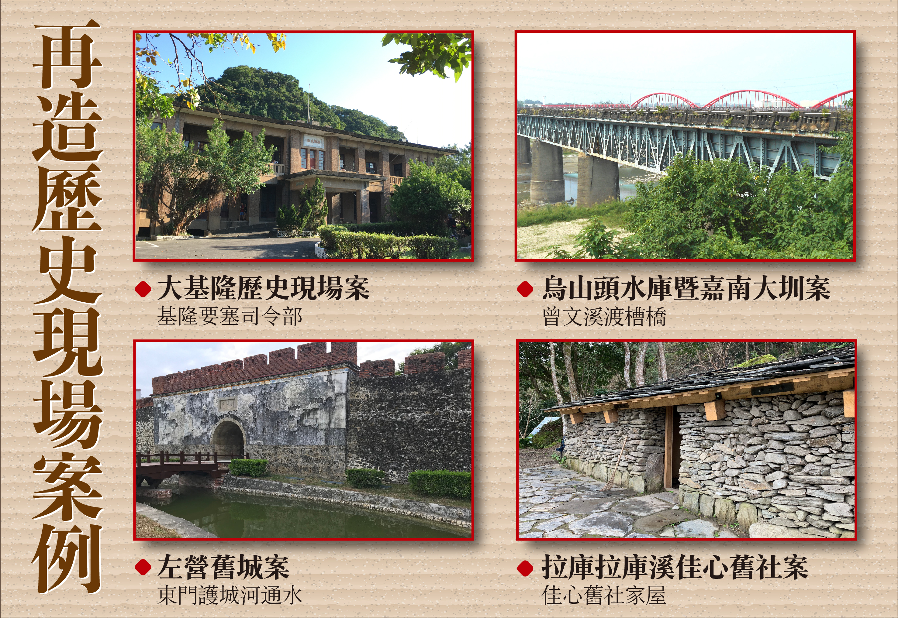 文化資產是土地與人民歷史記憶的具體展現,透過保存與傳承,不僅建構國家文化主體性,也彰顯臺灣文化的多元性與獨特性。推廣市民對都市歷史與在地文化的認同,是保存文化環境與再生的關鍵。