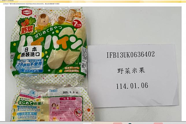 - 2025年初,食藥署檢出多批日本嬰兒米餅鎘含量超標(0.046 ppm,超出0.040 ppm標準),涉及品牌如KAMEDA,並對相關批次進行退運或銷毀。